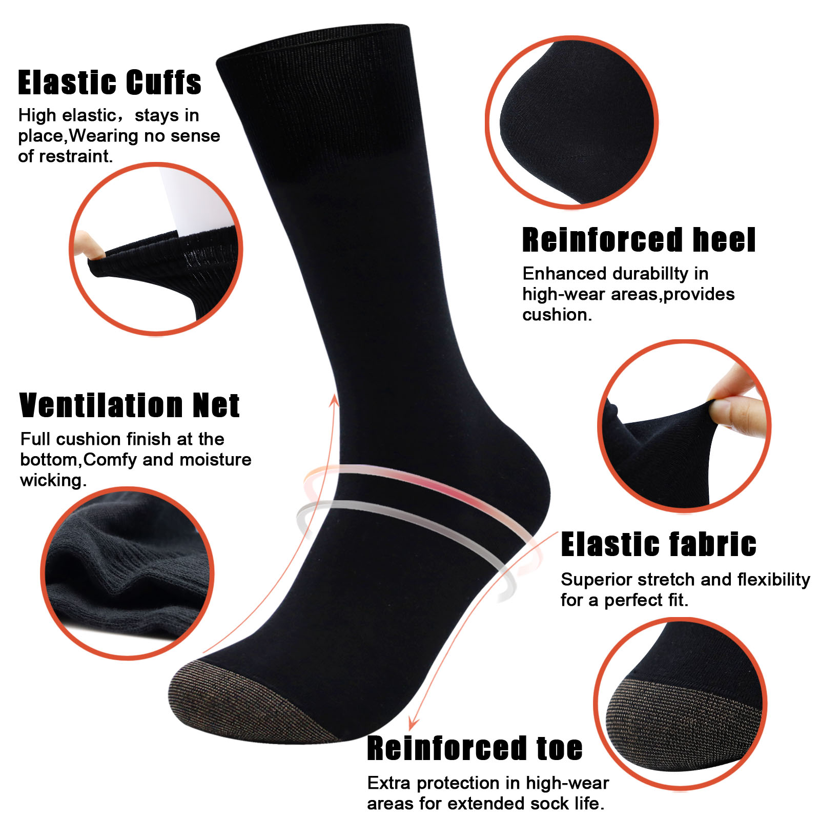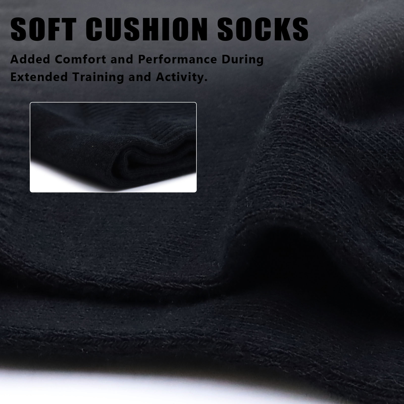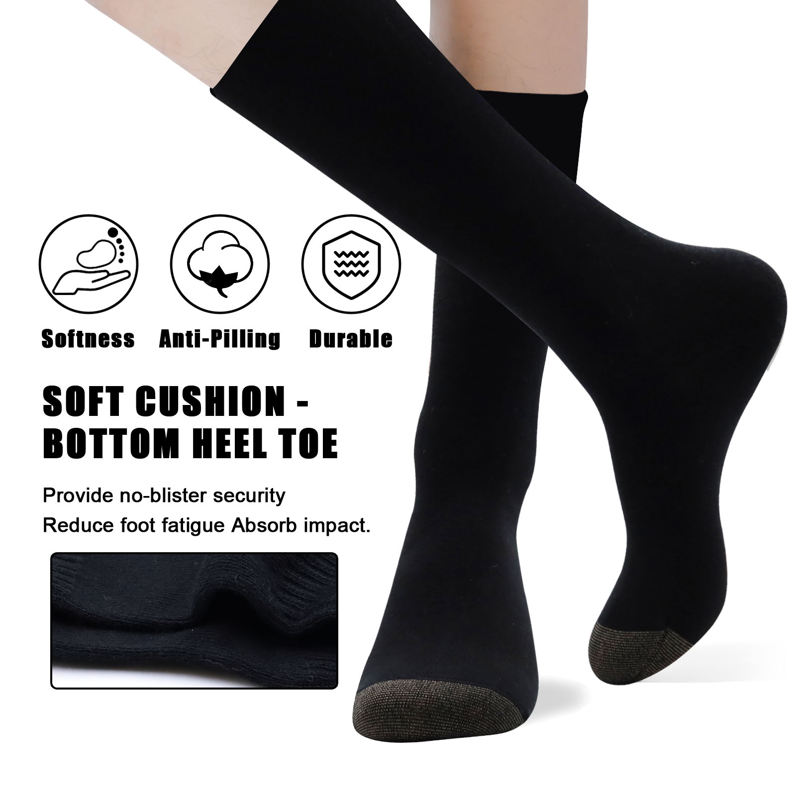 - A thick sole and reinforced heel add cushion and durability. The seamless toe helps prevent rubbing and blisters. Arch and ankle support keep your feet stable during sports or daily wear.